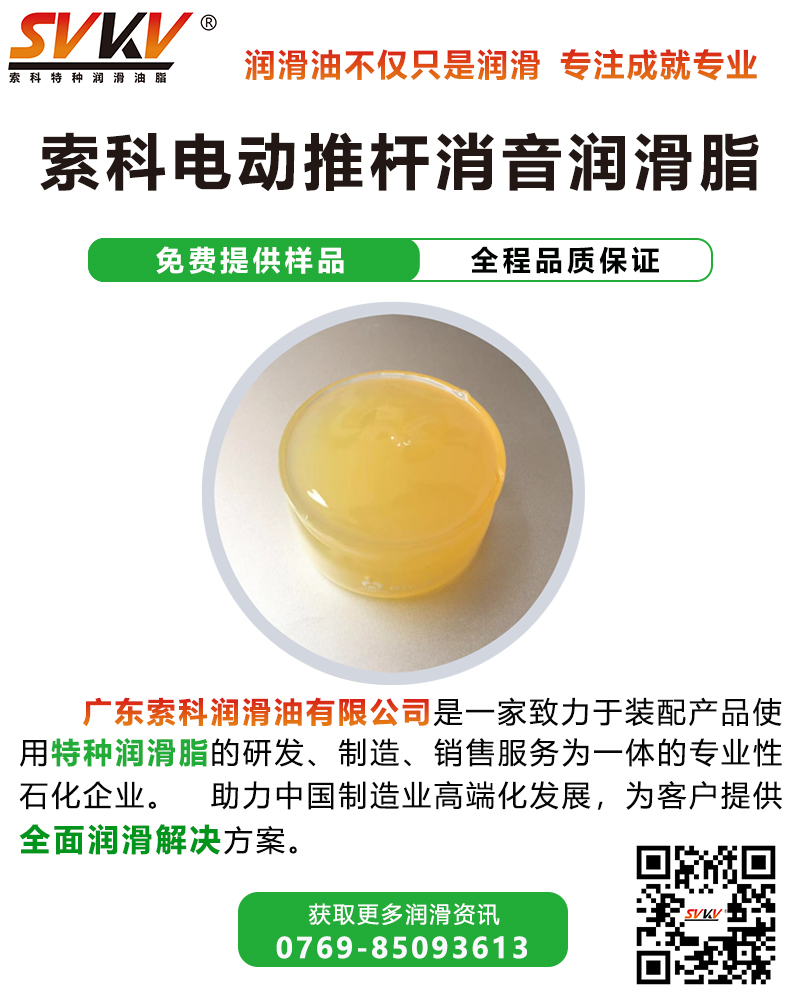索科SVKV系列電動(dòng)推桿消音潤滑脂,采用特殊的全合成油和獨(dú)特的添加劑制成,具有強(qiáng)韌的油膜,生成的潤滑油膜可在馬達(dá)軸承運(yùn)行時(shí)持久有效地保持軸承內(nèi)部摩擦表面的分離,確保軸承少磨損甚至無磨損地運(yùn)行,從而延長軸承使用壽命,增加運(yùn)行可靠性,增加軸承對(duì)極端條件的耐受性。