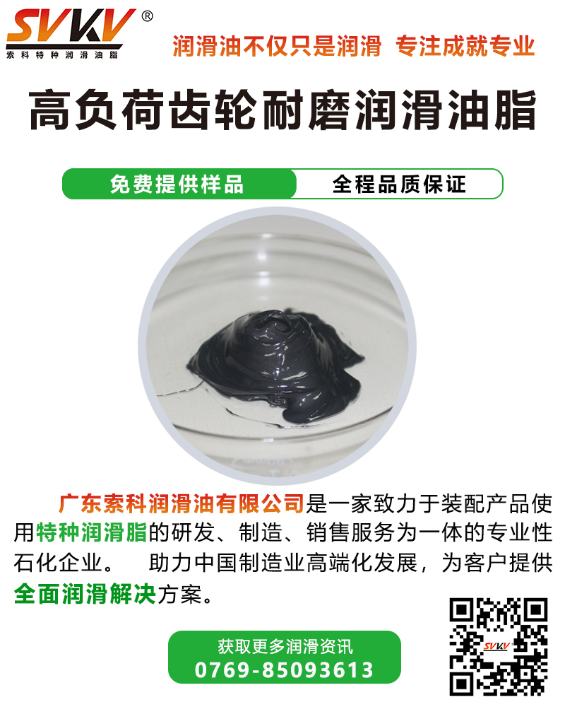 廣東索科潤(rùn)滑油有限公司專(zhuān)注于高低溫裝配潤(rùn)滑油脂,助力中國(guó)制造業(yè)高端化發(fā)展,為客戶(hù)提供全面潤(rùn)滑解決方案。企業(yè)通過(guò)ISO9001質(zhì)量體系認(rèn)證,所有產(chǎn)品通過(guò)第三方SGS認(rèn)證,歐盟環(huán)保RoHS認(rèn)證,食品級(jí)潤(rùn)滑脂通過(guò)FDA/USDF/NSF H1食品級(jí)認(rèn)證。憑借專(zhuān)業(yè)化技術(shù),研發(fā)以及特種潤(rùn)滑產(chǎn)品,我們?yōu)榭蛻?hù)創(chuàng)造更多價(jià)值!期盼與您合作,為您服務(wù)!