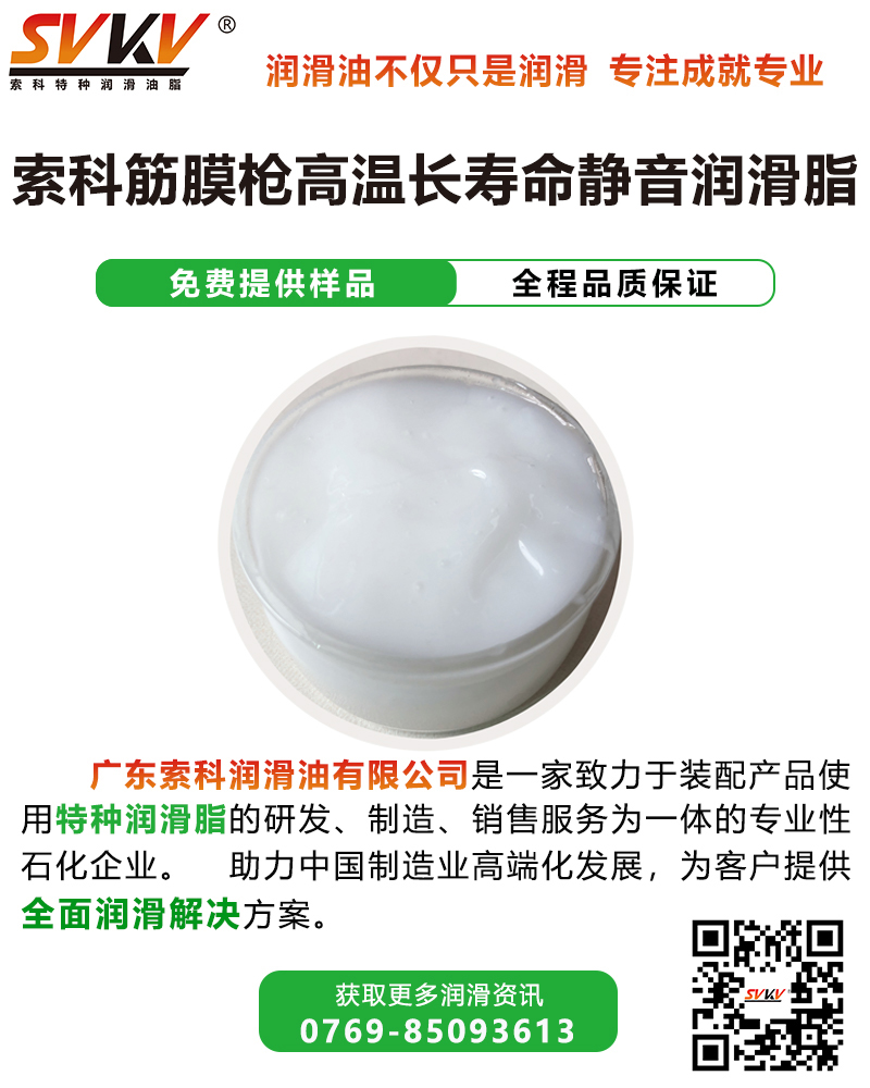 索科SVKV筋膜槍高溫長壽命靜音潤滑脂選用高性能基礎油,并添加多種高效抗氧化、抗腐蝕等添加劑精制而成,是專為筋膜槍零部件研發(fā)的潤滑油脂。索科SVKV筋膜槍高溫長壽命靜音潤滑脂能有效減少筋膜槍軸承套筒磨損,降低噪音,以達到延長壽命的效果。