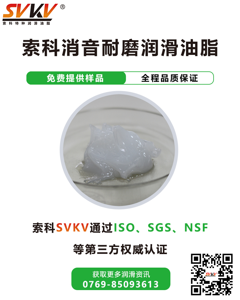 索科SVKV消音耐磨潤(rùn)滑油脂選用高性能基礎(chǔ)油,并添加多種高效抗氧化、抗腐蝕等添加劑精制而成,能有效減少零部件磨損,降低噪音,達(dá)到消音潤(rùn)滑,延長(zhǎng)零部件使用壽命的效果。