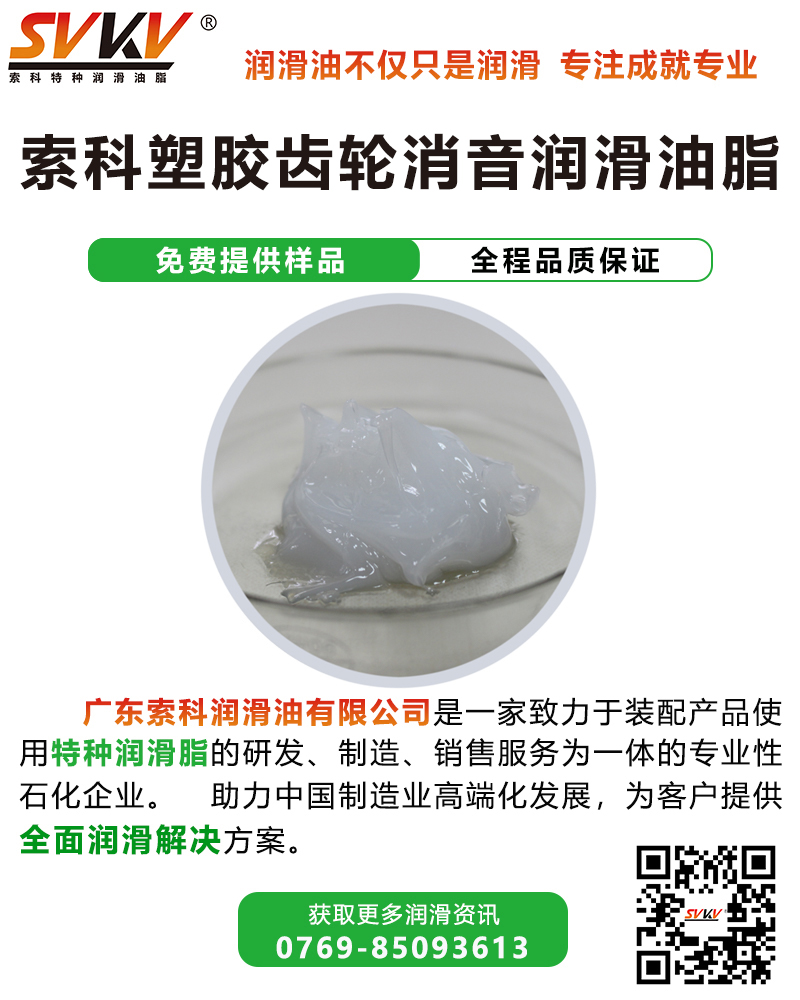 索科SVKV塑膠齒輪消音潤滑油脂選用高性能基礎油,并添加多種高效抗氧化、抗腐蝕等添加劑精制而成,是專為塑膠齒輪而研制。索科SVKV塑膠齒輪消音潤滑油脂能有效減少齒輪磨損,降低噪音,達到延長齒輪壽命的效果。
