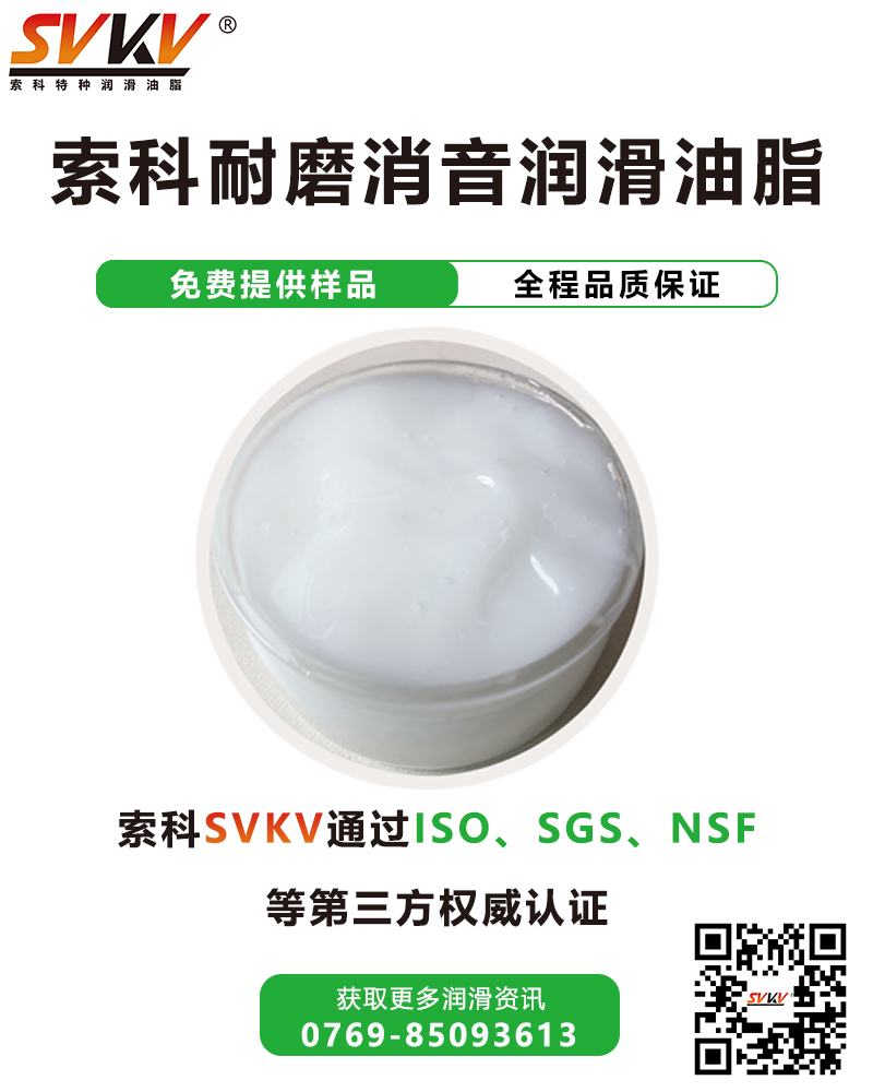 索科SVKV耐磨消音潤滑油脂選用高性能的基礎(chǔ)油,并加多種高效防氧化、防腐蝕等多種添加劑精制而成。設(shè)計用于在低溫或高溫環(huán)境下低扭矩運行的塑膠與塑膠、塑膠(或橡膠)與金屬部件及滑動軸承的終身潤滑。