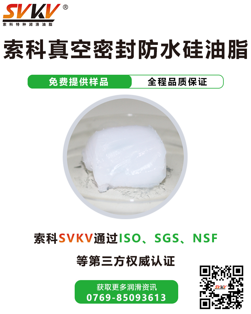 索科SVKV真空密封防水硅油脂是由精煉合成油作為基礎油稠無機稠化劑,并加有結構穩(wěn)定劑、多種添加劑精制而成特種油脂,具有良好的防水密封性、防水、抗溶劑性和抗爬電性能,不腐蝕金屬,與橡膠多具有較好的適應性。