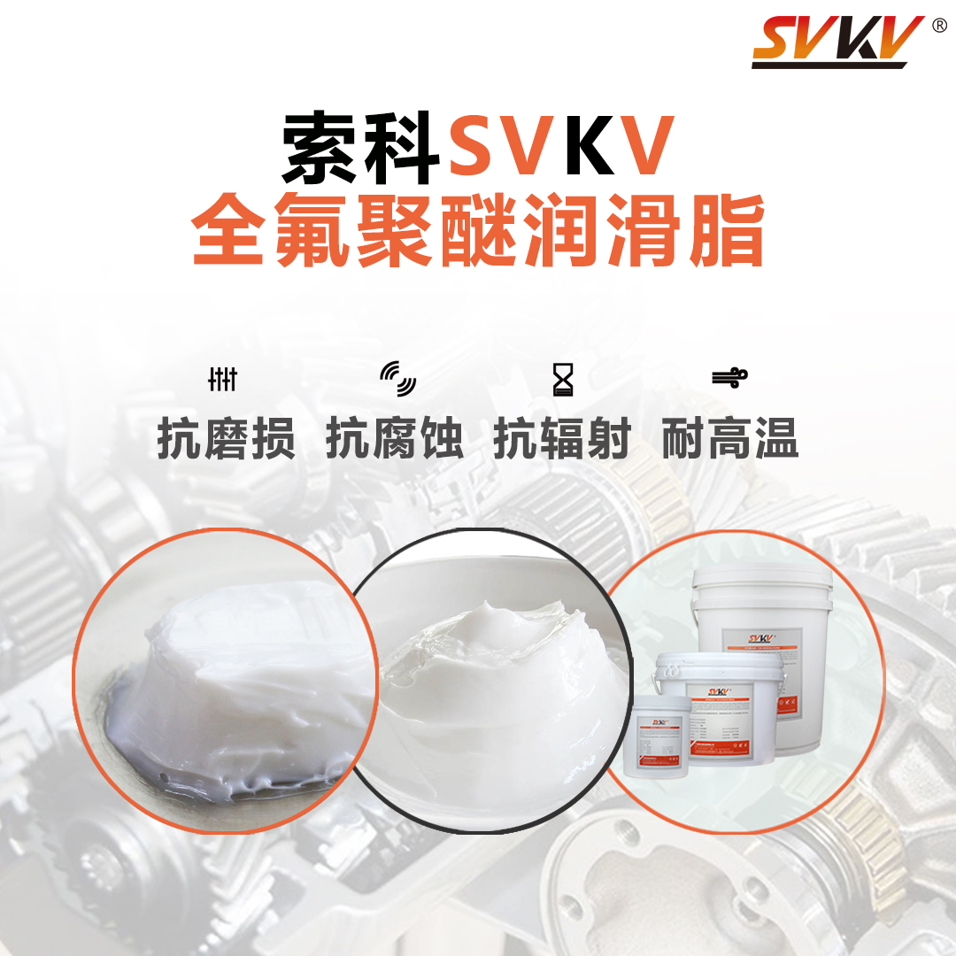 索科SVKV全氟聚醚潤滑脂是由聚四氟乙烯(PTFE)并添加特種抗腐蝕添加劑精制而成的白色全氟聚醚潤滑脂。氟素潤滑脂專用于高溫、高負載、化學(xué)腐蝕環(huán)境中的軸承、齒輪、頂針以及要求終身潤滑的部件,抗氧化、低揮發(fā)、不結(jié)焦、不積碳、抗腐蝕、耐磨損、抗極壓性好,特別是在極度高溫和惡劣環(huán)境下的使用。SK系列氟素潤滑脂可使產(chǎn)品壽命延10到60倍。