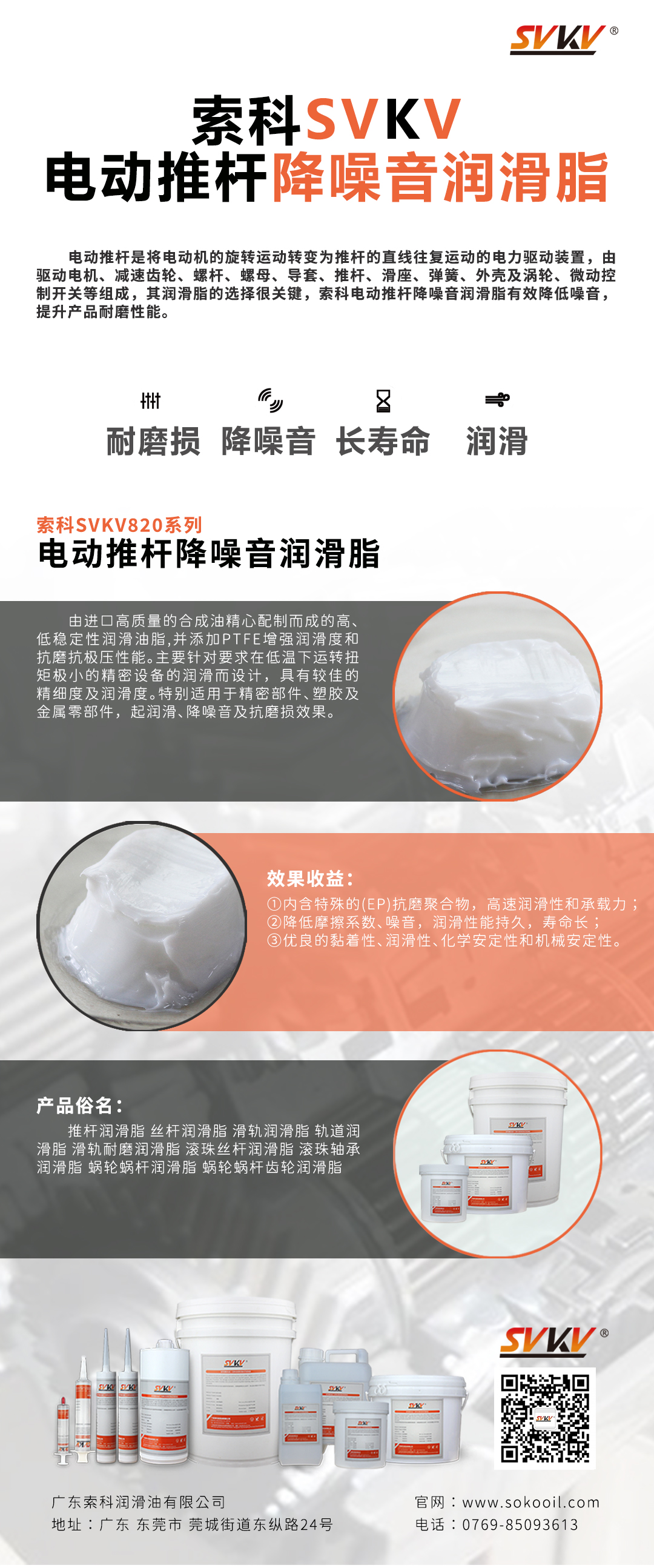 索科為企業(yè)提供潤(rùn)滑方案,降本增效,適合的潤(rùn)滑脂能有效減少磨損,降低噪音,延長(zhǎng)產(chǎn)品壽命。索科提供電動(dòng)推桿降噪音潤(rùn)滑脂0769-85093613免費(fèi)樣品,全程品質(zhì)保證!